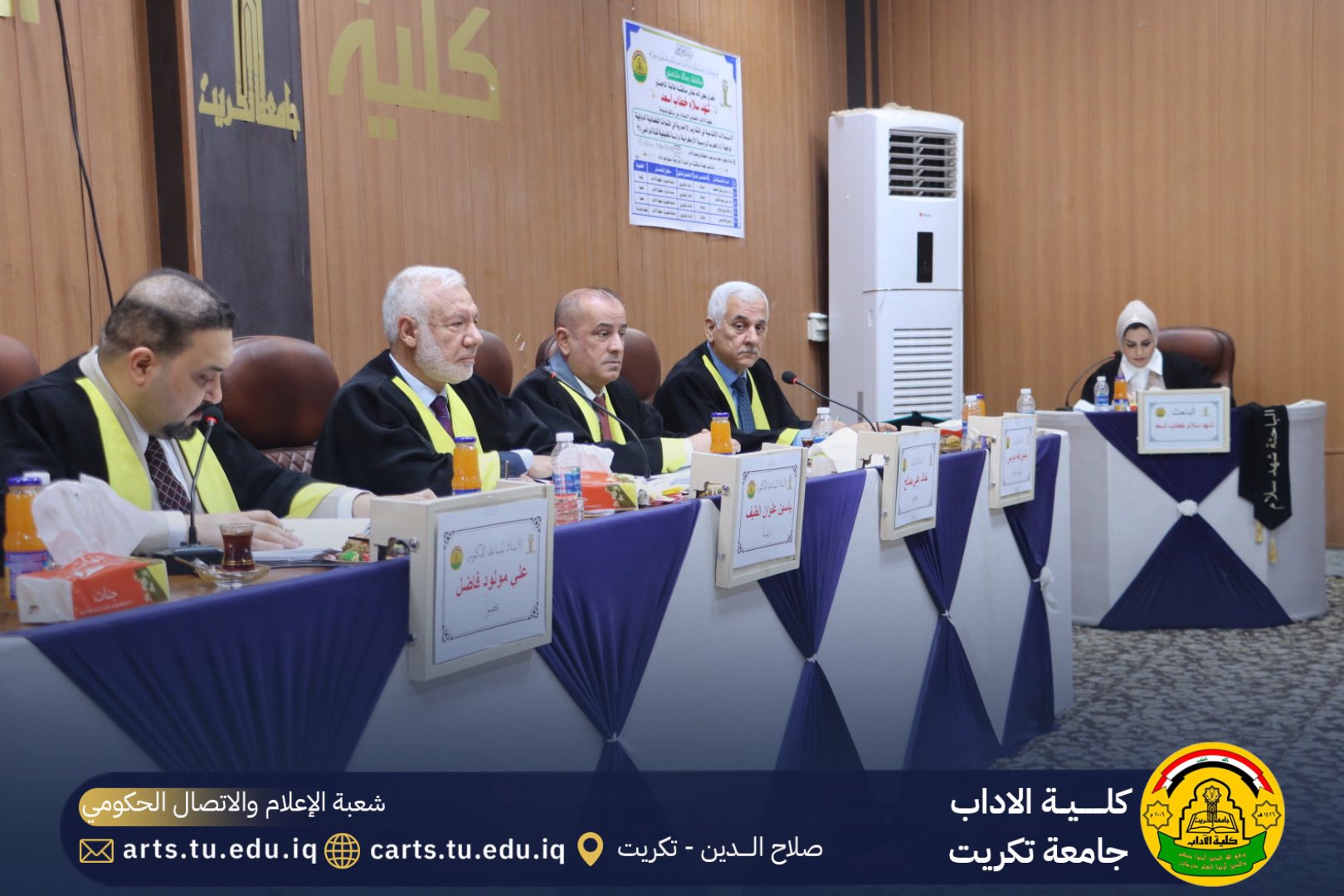 وقد حضر المناقشة ( ا.د. مربد صالح ضامن ) ، عميد كلية الآداب ،