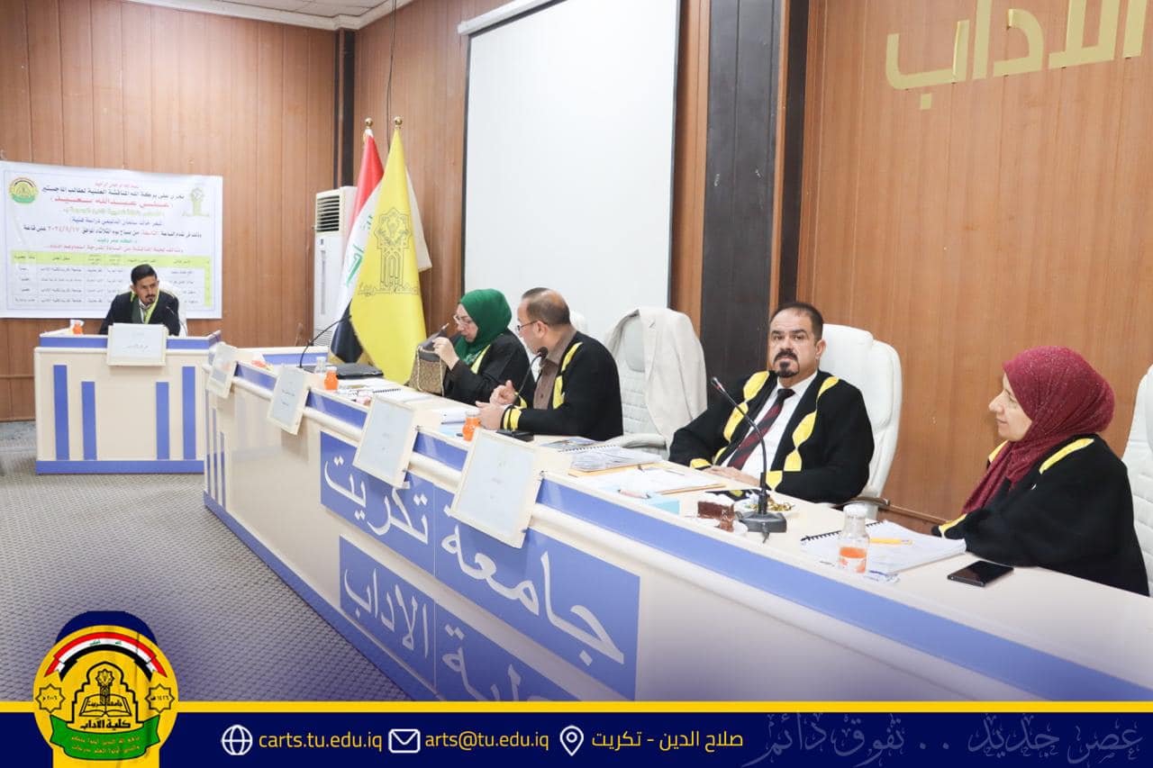 و قد حضر المناقشة السيد معاون عميد كلية الآداب للشؤون الإدارية ( ا.م.د. عبدالرحمن محمود محمد ) و مجموعة من اساتذة و طلبة القسم .