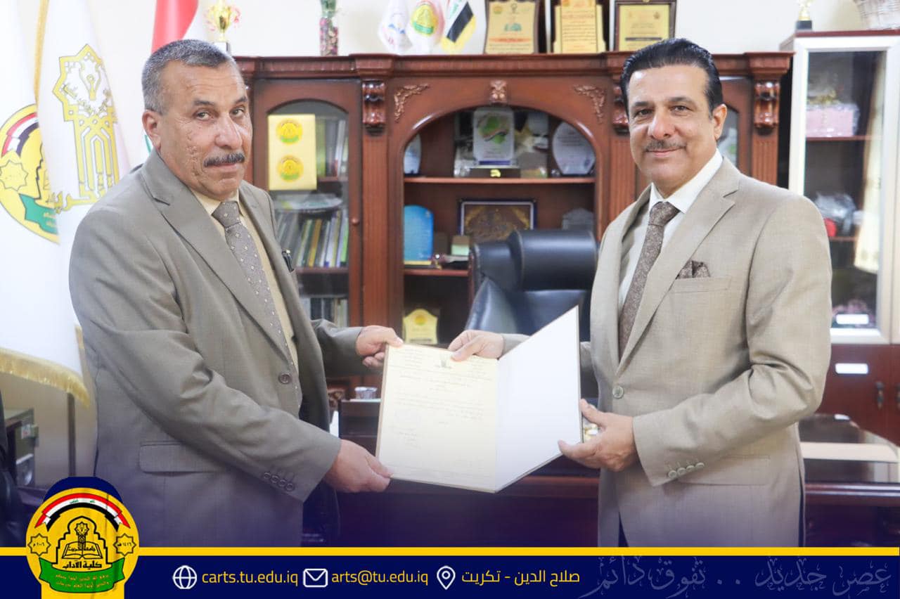 تتقدم عمادة كلية الآداب بأسمى آيات التهاني والتبريكات إلى ( الدكتور دحام عصام رعد ) عضو الهيئة التدريسية في كلية الآداب- قسم الإعلام .