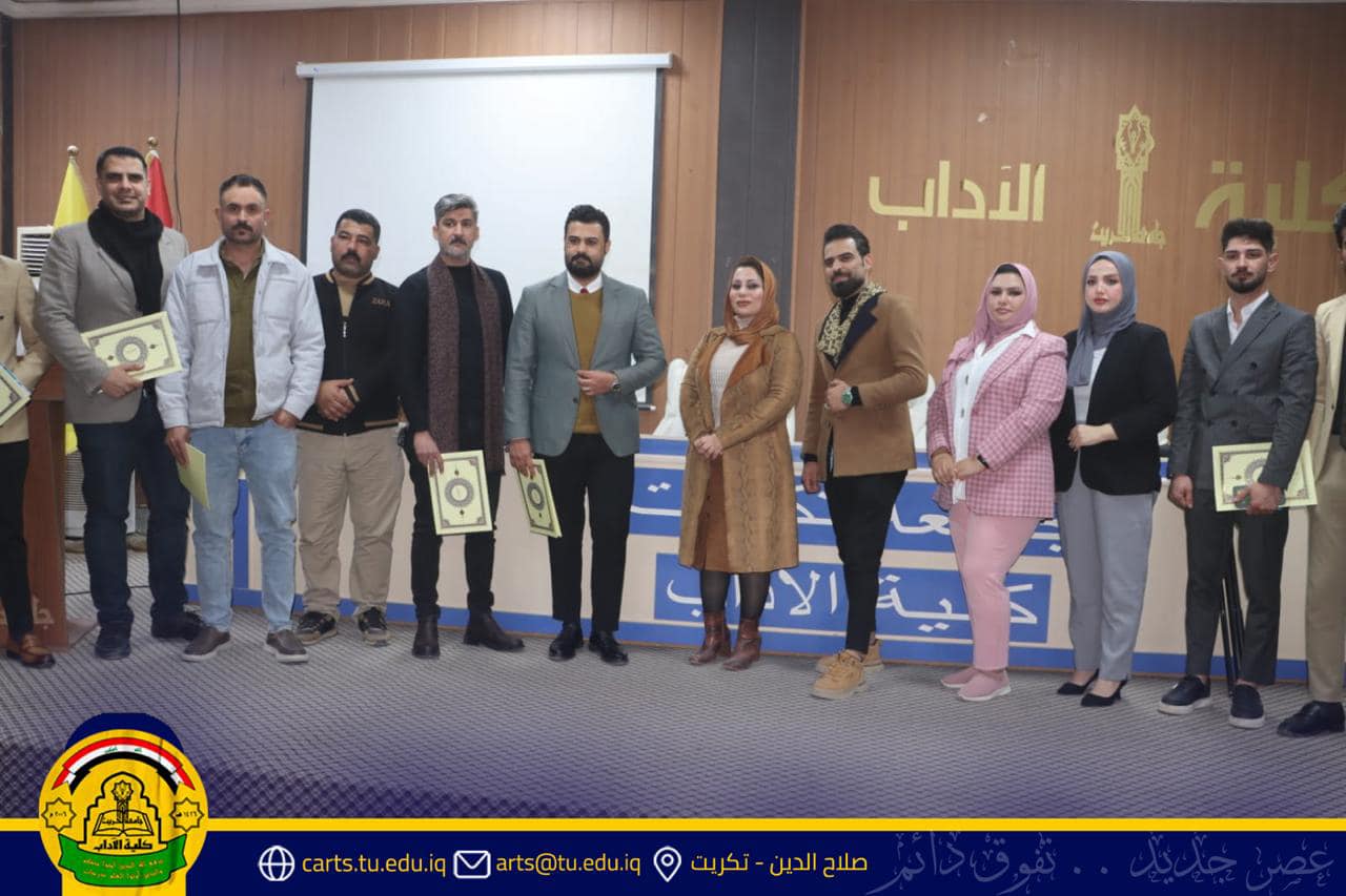 برعاية الأستاذ الدكتور وعد محمود رؤوف، رئيس جامعة تكريت، وإشراف الأستاذ الدكتور مربد صالح ضامن، نظّمت كلية الآداب مهرجانًا شعريًا للشعر الشعبي، بمشاركة نخبة من شعراء منتدى هلي للشعر الشعبي، وبحضور عدد من الأساتذة والطلبة.