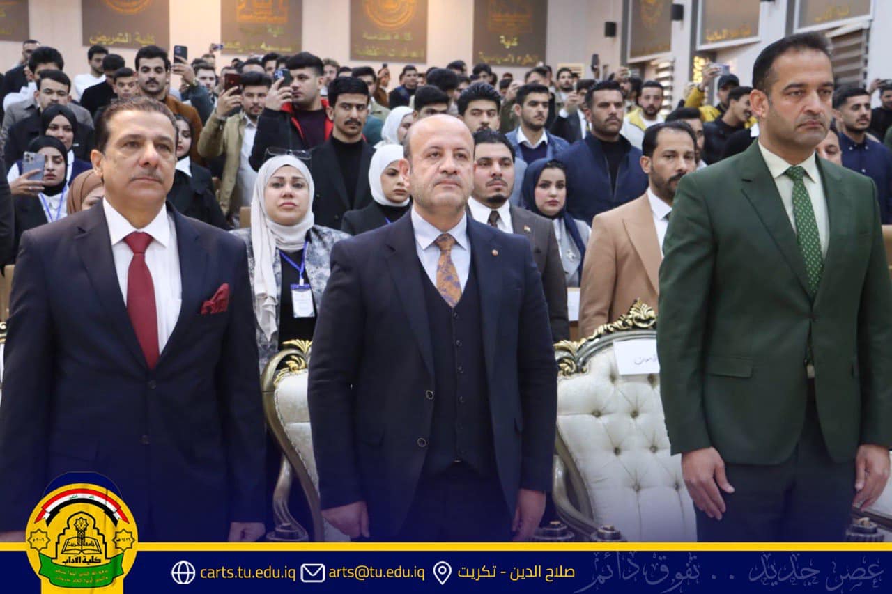 افتُتِح اليوم الأول بتلاوة آيات من القرآن الكريم، تلاها النشيد الوطني ونشيد جامعة تكريت، ثم كلمة رئيس الجامعة التي أكد فيها على أهمية تعزيز البنية التحتية الرقمية، وتنمية مهارات التدريسيين والطلبة في الإعلام الرقمي والذكاء الاصطناعي، مع مراعاة الجوانب الأخلاقية لاستخدام هذه التقنيات بشكل مسؤول ومستدام.