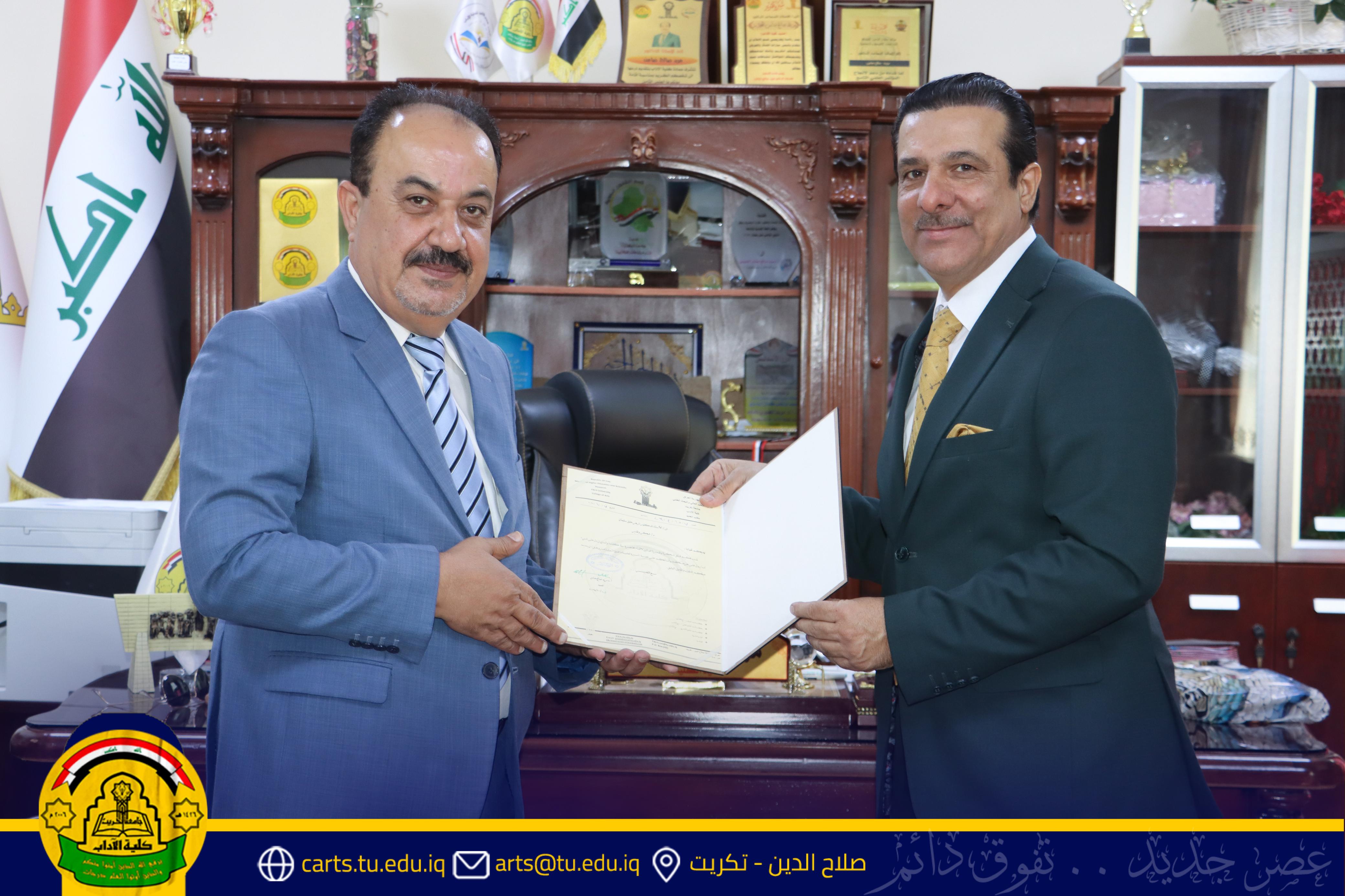 و قد منح السيد عميد الكلية ( ا.د. مربد صالح ضامن ) درع الكلية و كتاب شكر و تقدير للاستاذ الدكتور ازهر خليل سليمان تثميناً لجهوده المبذولة متمنياً له النجاح و التوفيق الدائم .