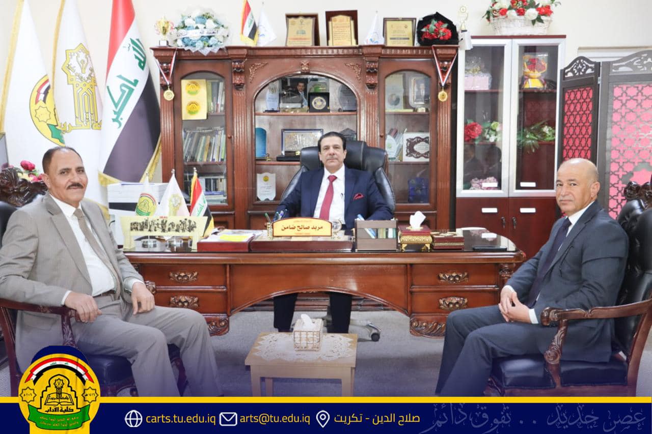 وقد عبّر السيد العميد عن شكره وتقديره للأستاذ الدكتور ( نزار فاضل حسين ) على تفانيه وجهوده المتميزة طيلة فترة تكليفه، كما بارك للأستاذ الدكتور ( عطية مساهر حمد ) تسنّمه المهام الجديدة، متمنيًا له التوفيق والنجاح في خدمة الكلية والمسيرة العلمية.