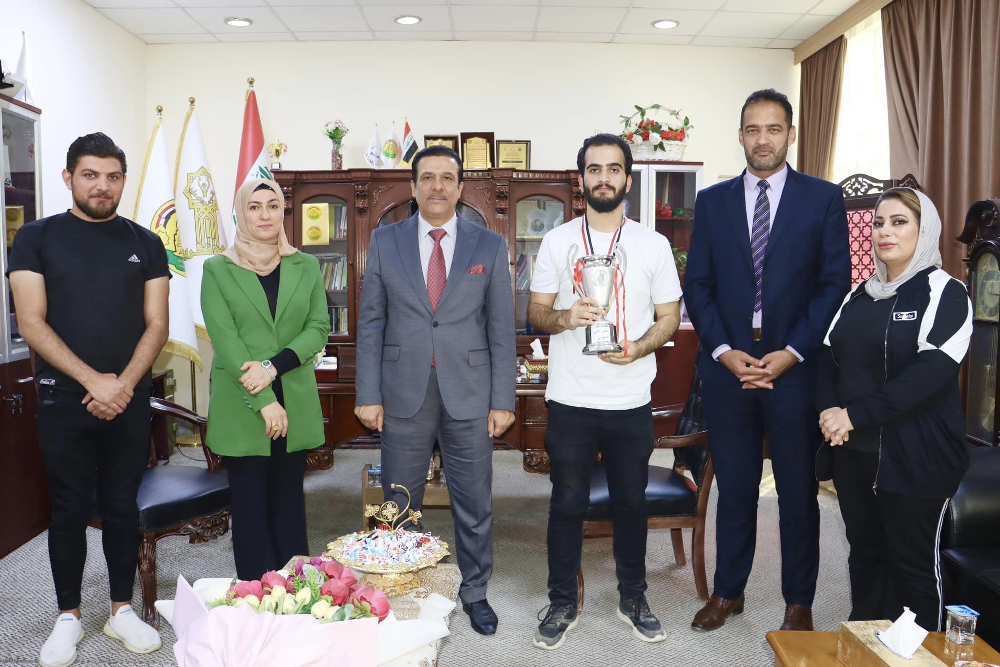 بدوره هنئ السيد العميد ( ا.د. مربد صالح ضامن ) الطالب بهذا الانجاز الرائع و اوعز بتكريمه ، راجياً له مزيداَ من التقدم والعطاء .