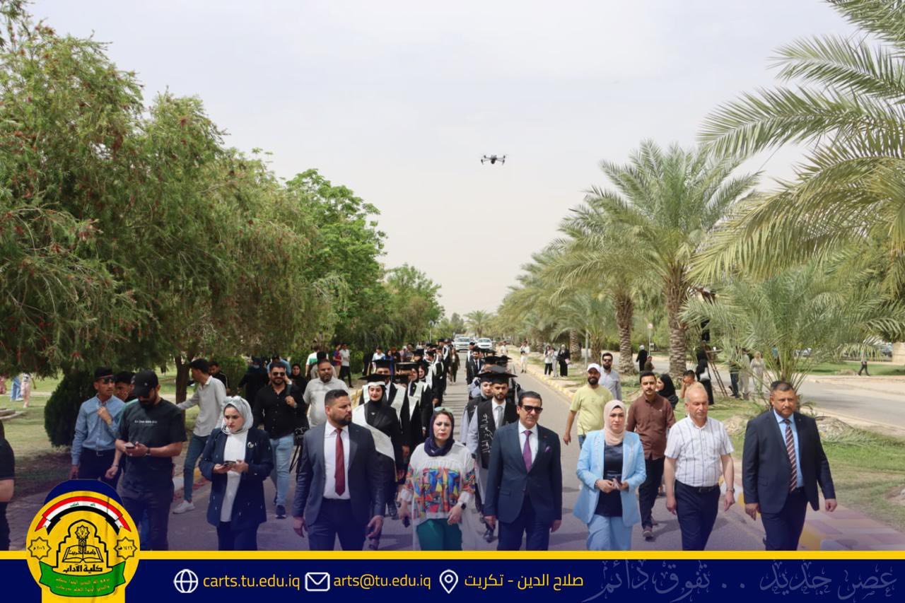 حيث انطلقت فعاليات الحفل بمسيرة احتفالية للطلبة الخريجين جابت أرجاء الجامعة، وسط أجواء من الفخر والفرح، قبل أن يتوجه الجميع إلى قاعات الكلية لاستكمال مراسم الاحتفال.