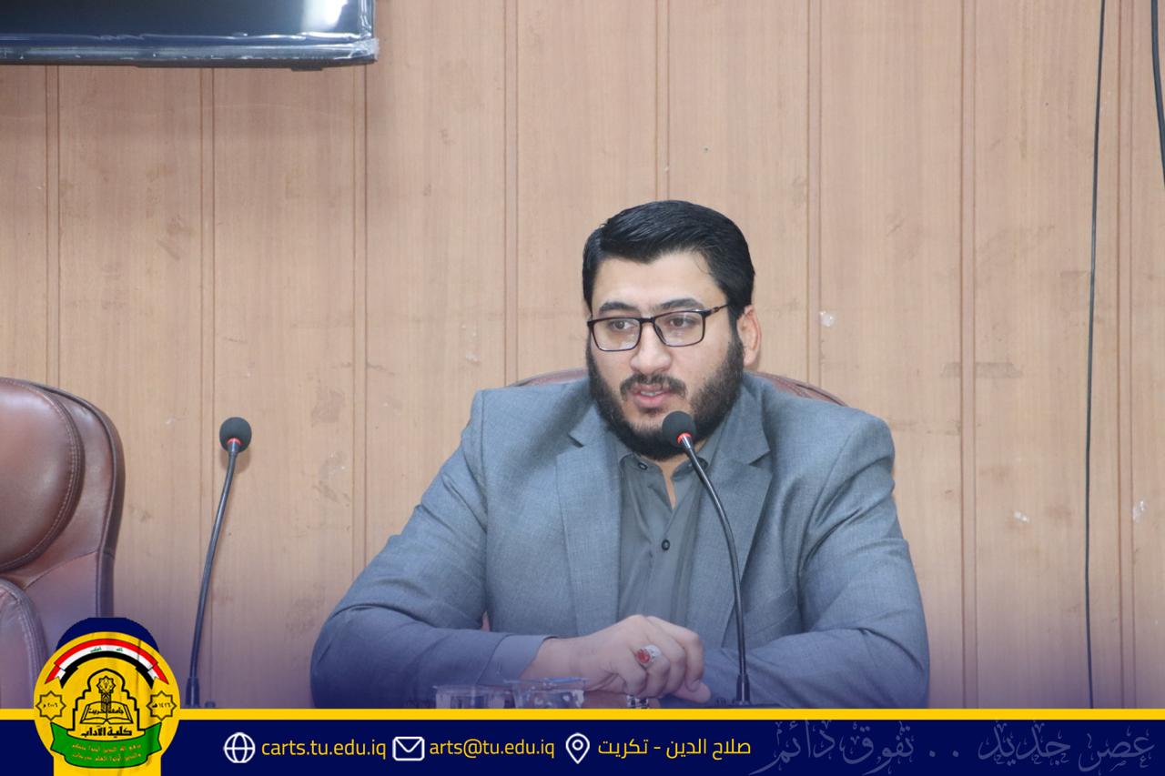 و قد حضر الندوة عميد كلية الآداب ( ا.د. مربد صالح ضامن ) و مجموعة من اساتذة و طلبة الكلية .