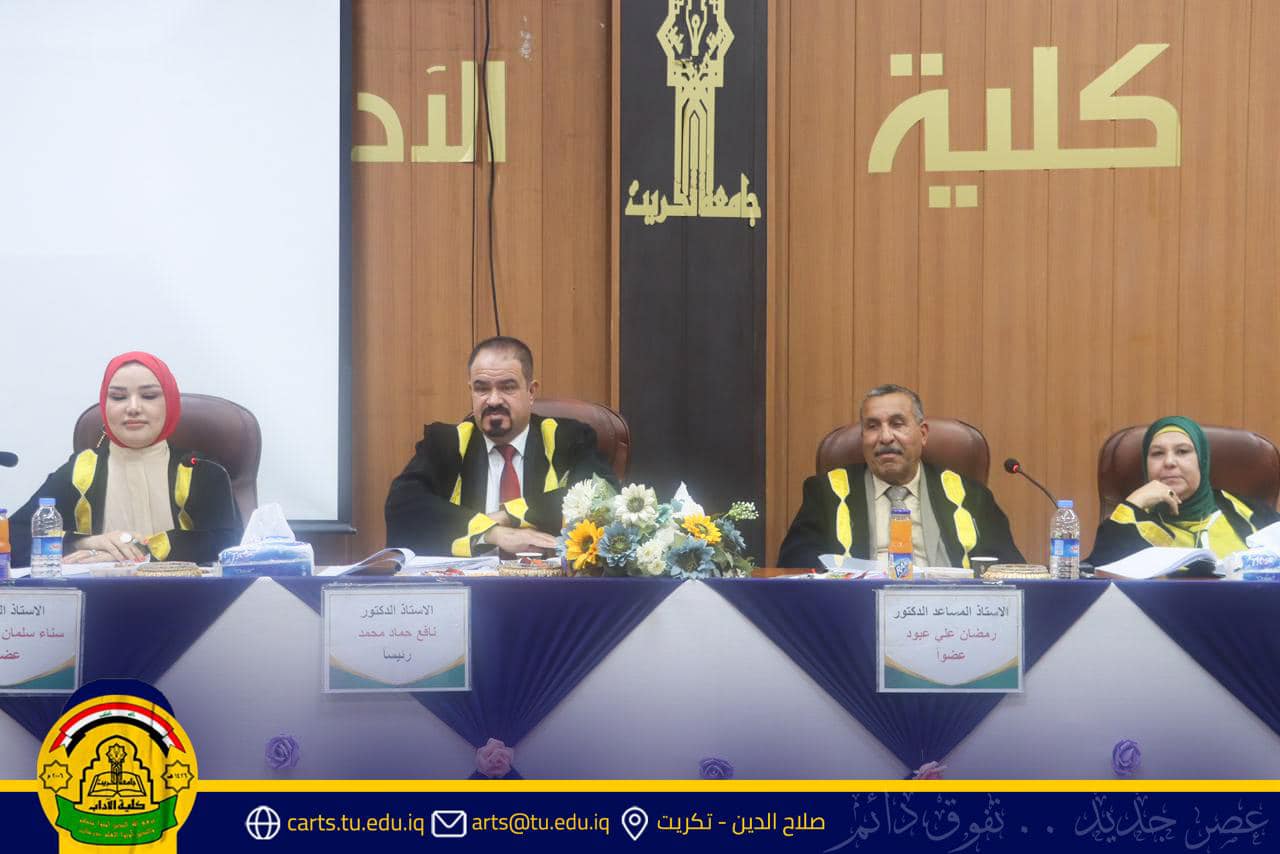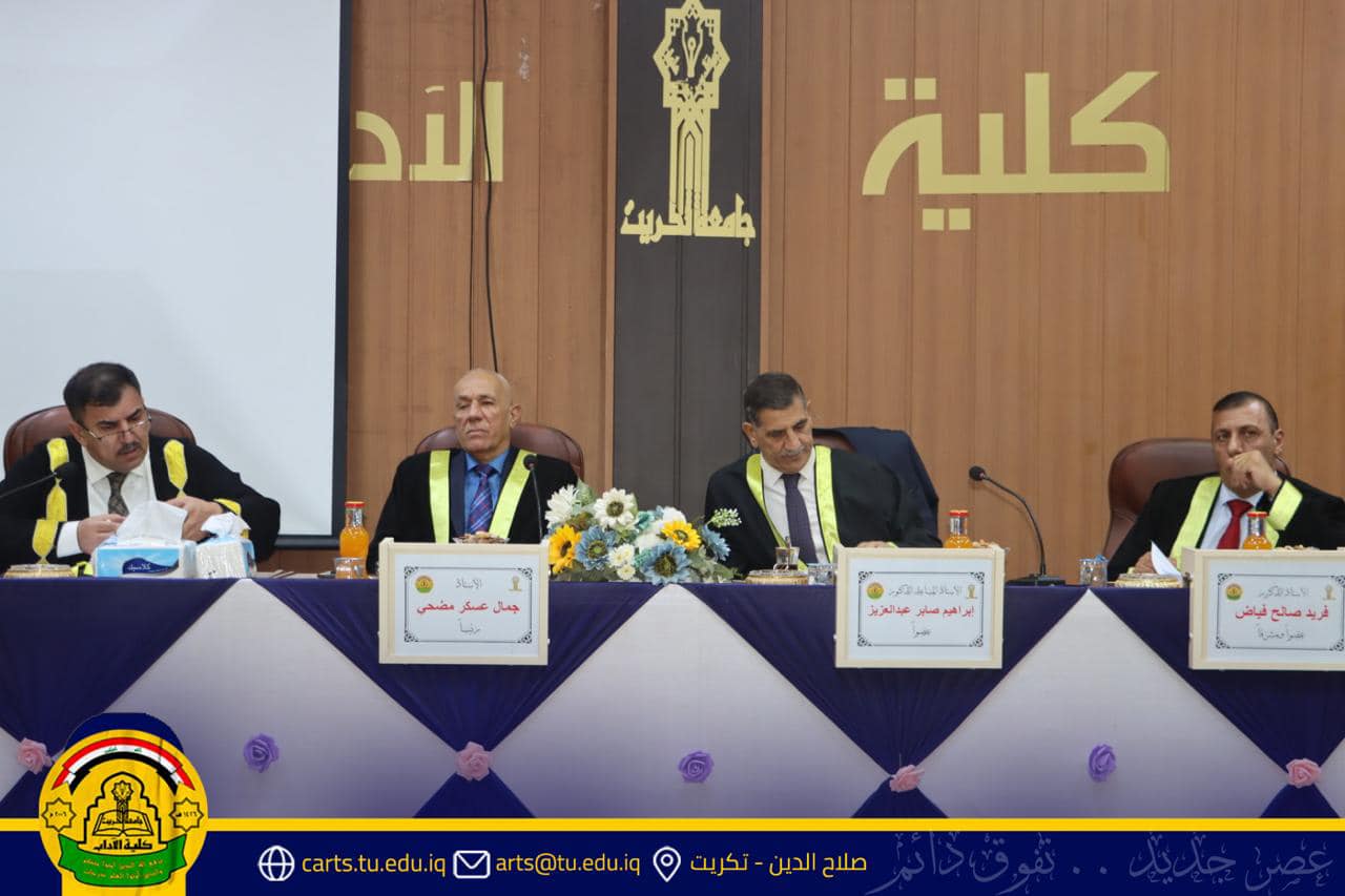 وقد حضر المناقشة ( ا.د. مربد صالح ضامن ) ، عميد كلية الآداب ،