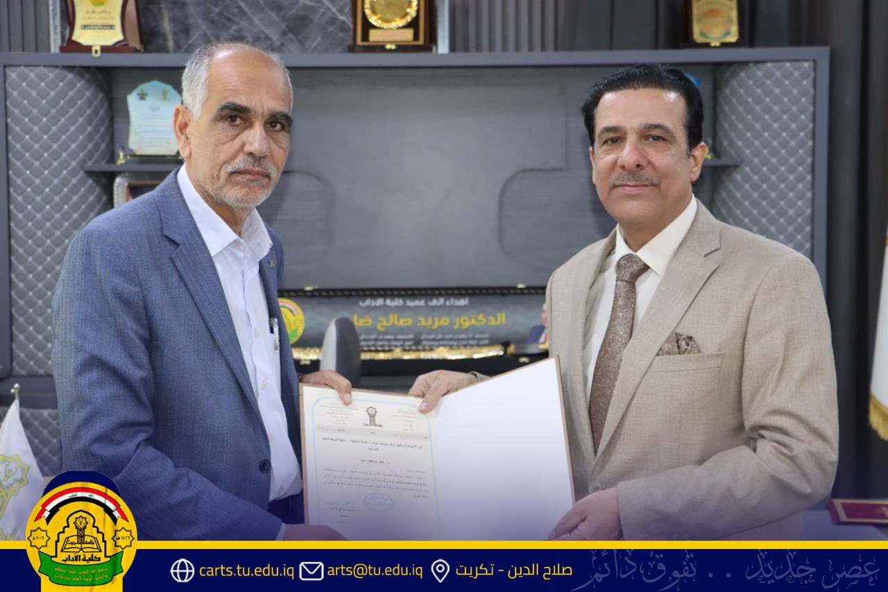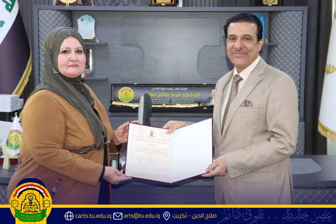 و قد حضر المناقشة ( ا.د. مربد صالح ضامن ) عميد كلية الآداب و مجموعة من اساتذة و طلبة الكلية .