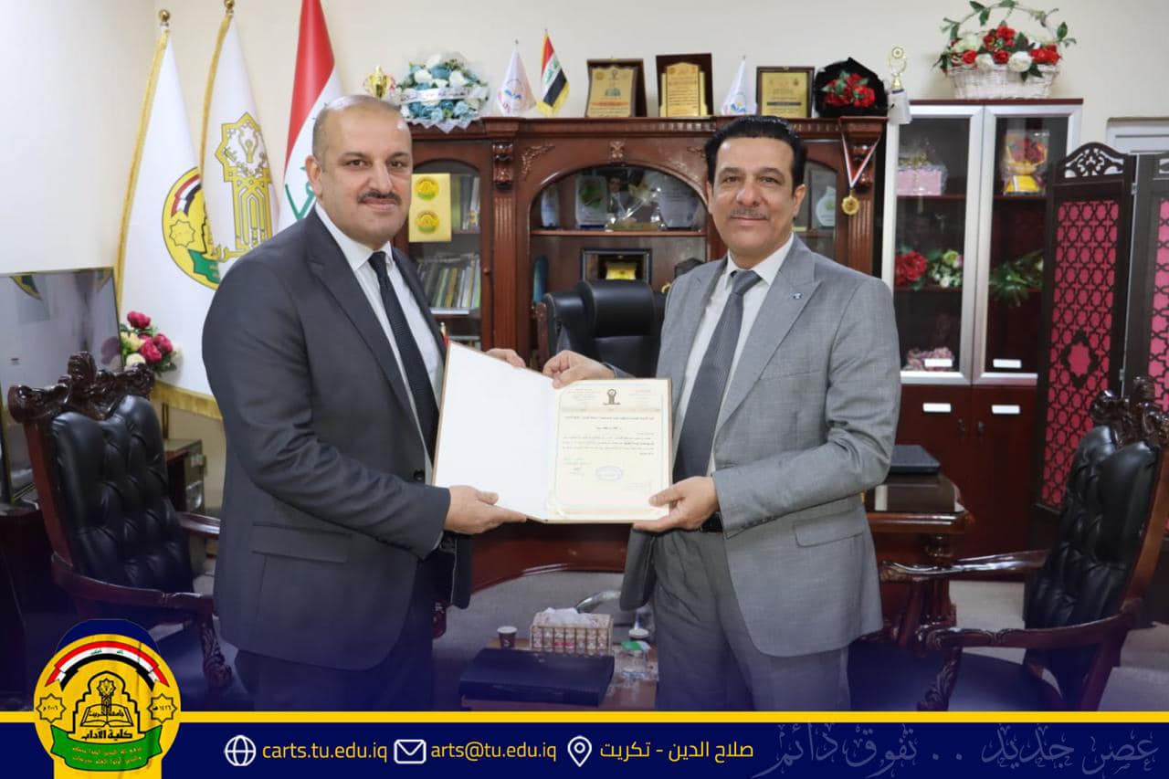 و قد منحَ السيد عميد كلية الآداب كتاب شكر و تقدير للأستاذ المساعد الدكتور ( محمد جاسم محمد ) وذلك لجهوده المبذولة في مناقشة الطالب متمنياً له النجاح و التوفيق الدائم .