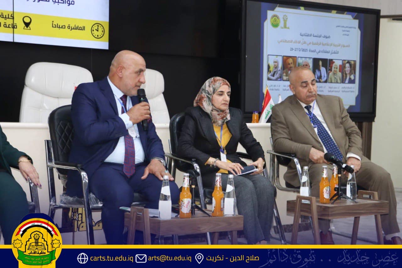 افتُتِح اليوم الأول بتلاوة آيات من القرآن الكريم، تلاها النشيد الوطني ونشيد جامعة تكريت، ثم كلمة رئيس الجامعة التي أكد فيها على أهمية تعزيز البنية التحتية الرقمية، وتنمية مهارات التدريسيين والطلبة في الإعلام الرقمي والذكاء الاصطناعي، مع مراعاة الجوانب الأخلاقية لاستخدام هذه التقنيات بشكل مسؤول ومستدام.