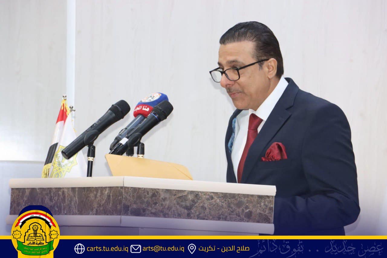 كما ألقى عميد كلية الآداب كلمةً شكر فيها رئاسة الجامعة، موضحًا أهمية دراسة الإعلام الرقمي والذكاء الاصطناعي لمواكبة التطورات التكنولوجية وإكساب الطلبة المهارات العملية.