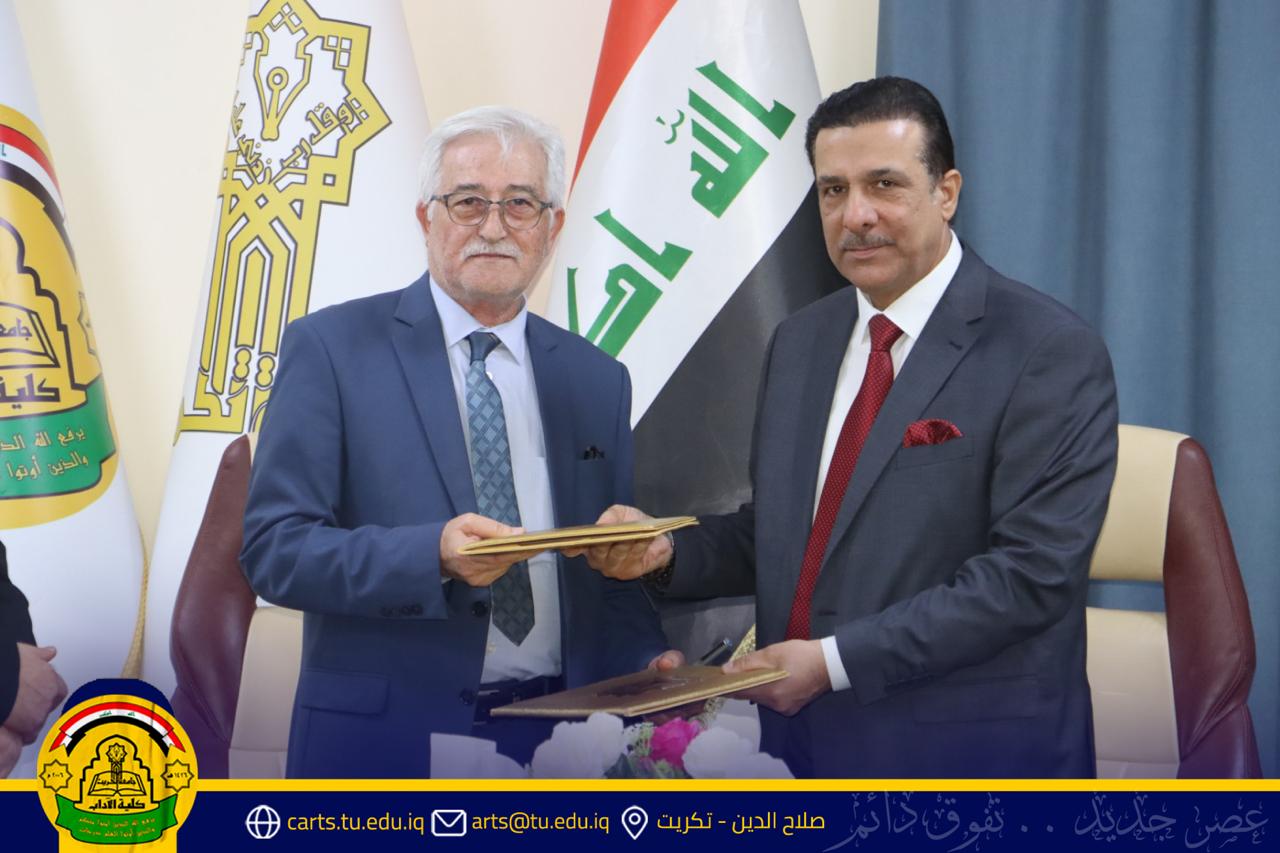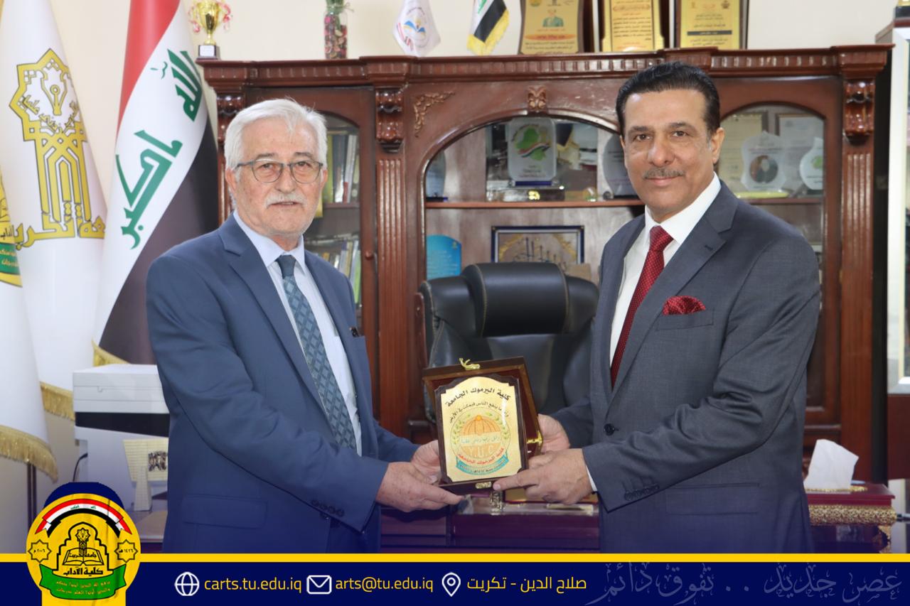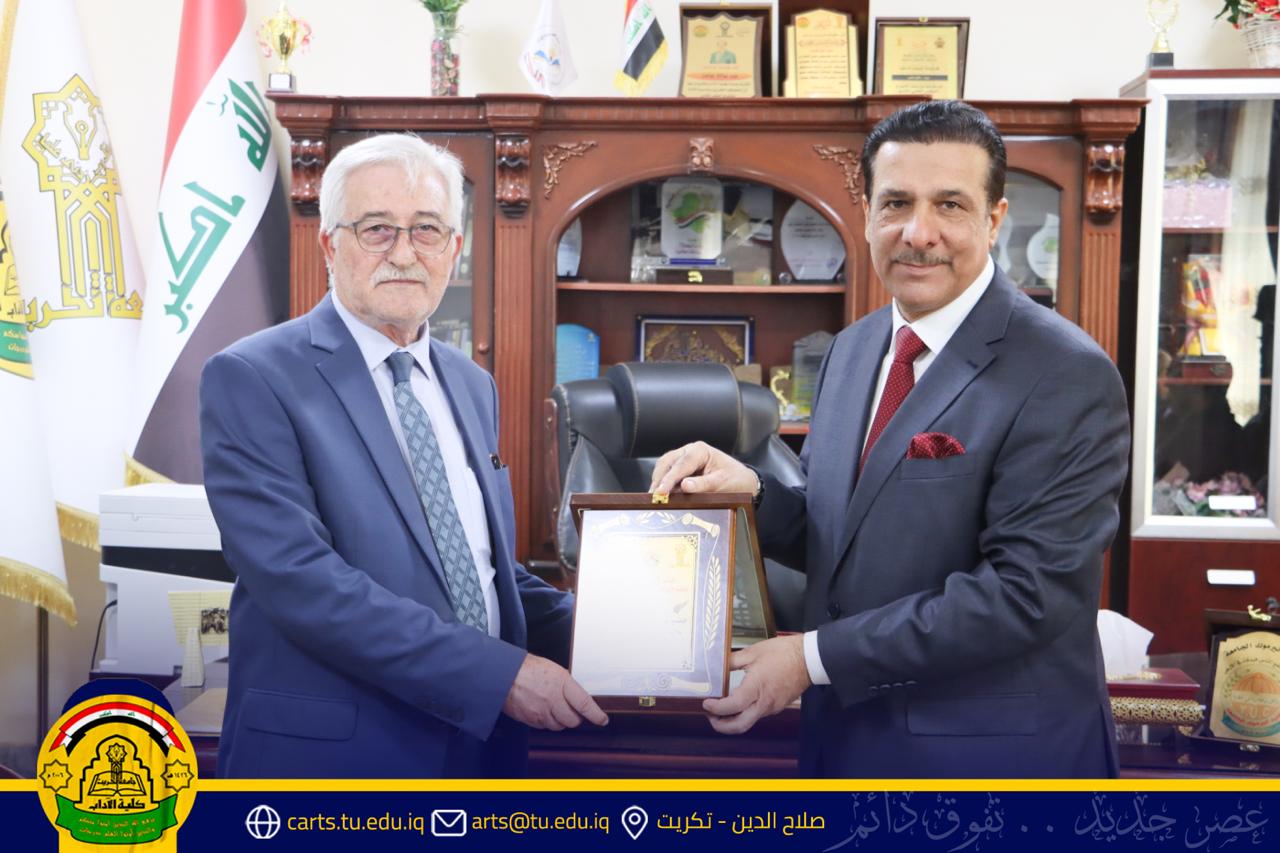 وعلى هامش الاتفاق قدم ( ا.د. مربد صالح ضامن ) عميد كلية الآداب درع الكلية إلى وفد كلية اليرموك الجامعة .